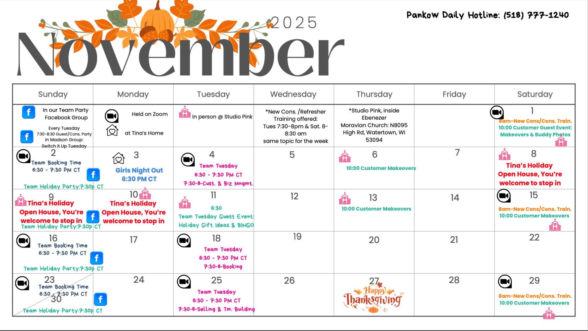 File away your recent customers, leads, potential team members, and any tasks into the correct day to follow up with.Example: Whatever is in the "Tuesday" folder is all you must focus on for Tuesday. Follow up with Susie on the product she purchased two days ago, then move her profile card to 2 weeks out or: Next Month: write a note/ sticky note with any memos to remember.